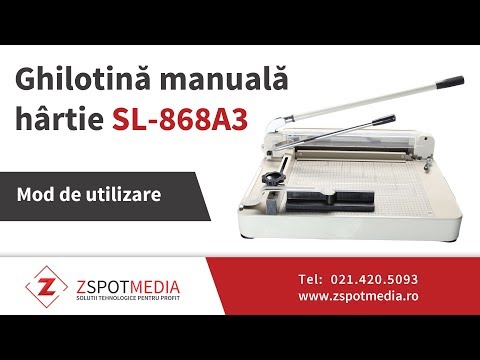Ghilotina SL-868A4 este un echipament manual, fiind un upgrade fata de modelul anterior, SL-858A4. Acest model prezinta o constructie menita sa aiba o durata mai mare de viata, iar cutitul realizeaza taieri cu precizie de pana la 0.2mm. Blocul limitator pentru topul de hartie are o mare libertate de pozitionare, inclusiv in pozitie oblica, pentru a obtine taieri la diverse unghiuri.